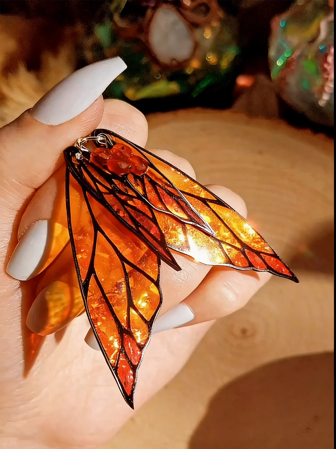 Glass-like translucent wings with a fiery blend of amber, burnt orange, and golden glow 🍂🔥