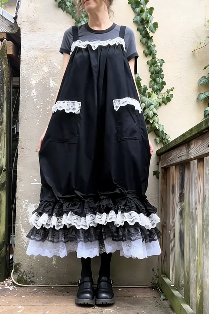 Black Cotton Ruffly Lace Babydoll Overalls – Soft & Timeless One Size