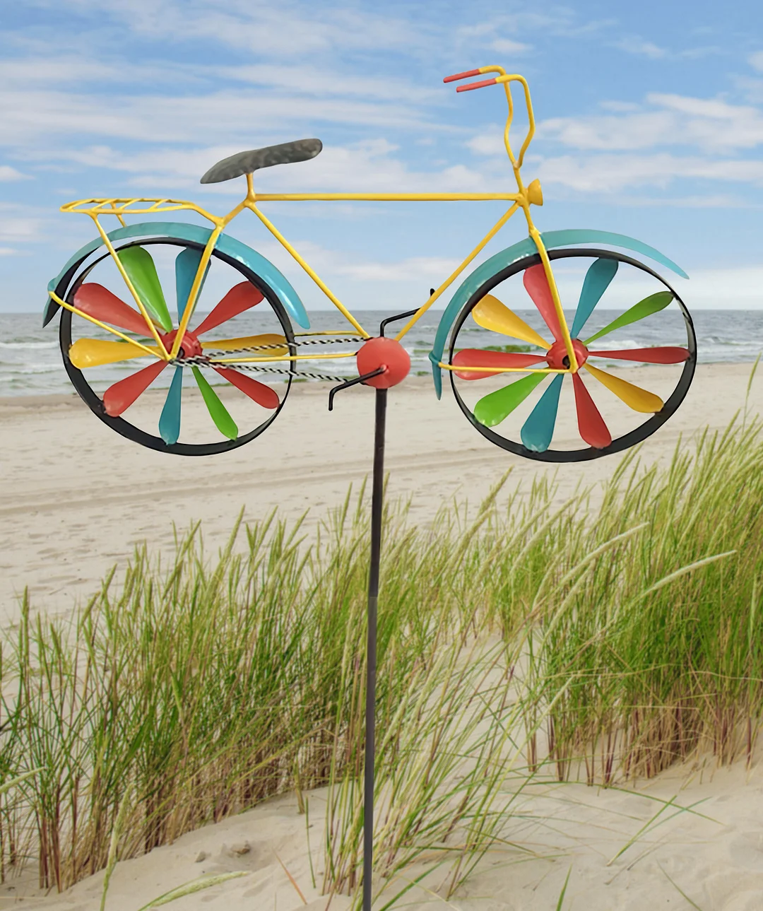 As the wind spins this metal art, you can show off your creativity and create a beautiful display in your yard.