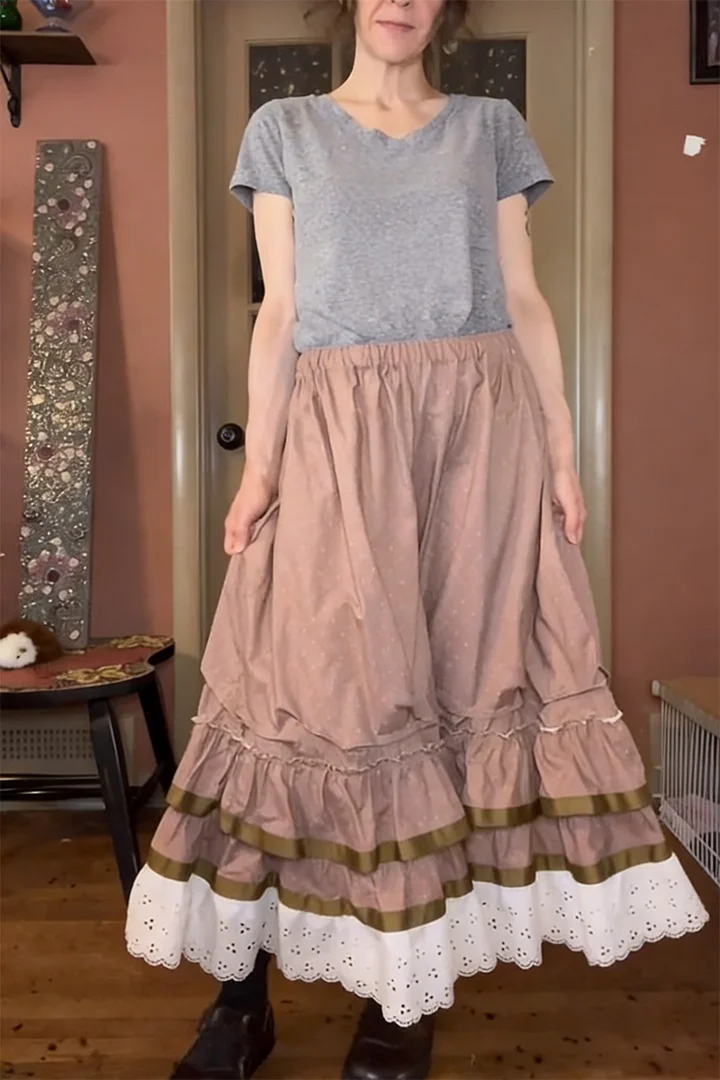✨ Extra wide, flowy silhouette with layered ruffled construction
