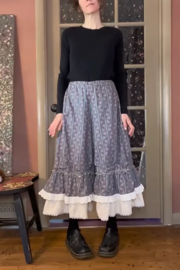 🌸 Ruffled hem with layered fabric and delicate lace peeking through